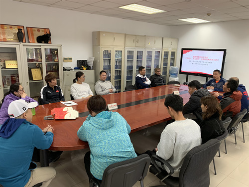 2019年10月23日上午9:20,重竞技教研室全体教师在网球综合馆三楼办公室召开“不忘初心、牢记使命”主题教育系列学习研讨会议,本次会议主题为学习“习近平总书记在庆祝中华人民共和国成立70周年大会上的重要讲话”,教研室全体教师相互交流学习体会,统一思想、凝聚共识。