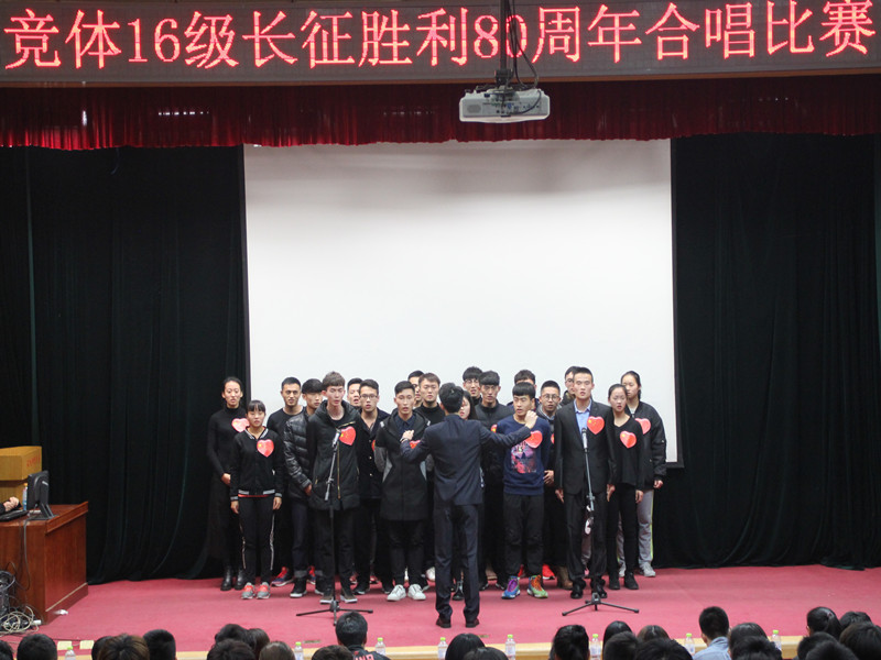 11月18号晚7:00,beat365vip官网登录入口2016级纪念红军长征胜利八十周年合唱比赛于大学生活动中心举行,本次比赛邀请了各班班主任、社会体育系学生会主席崔晓和管理学院学生会主席丁振担任本次的评委老师,邀请了辅导员李健老师、张怀川老师和宋少亭老师观看。