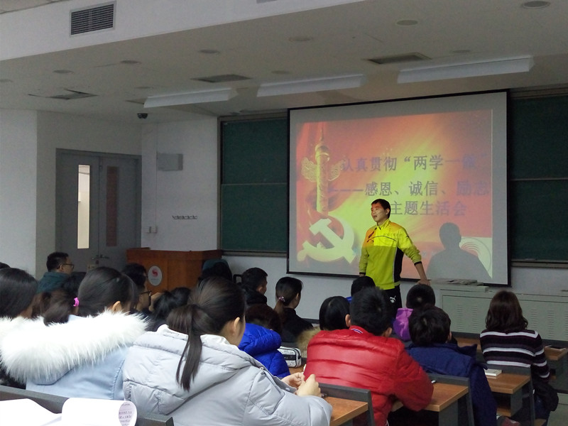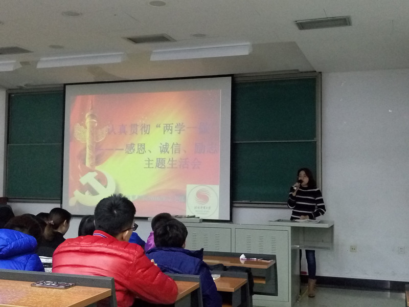 2016年12月28日13:00,beat365vip官网登录入口2016级积极入党申请人和优秀团员在党支部书记张怀川老师的组织下,于教学楼214教室开展认真贯彻“两学一做”——感恩、诚信、励志主题生活会。