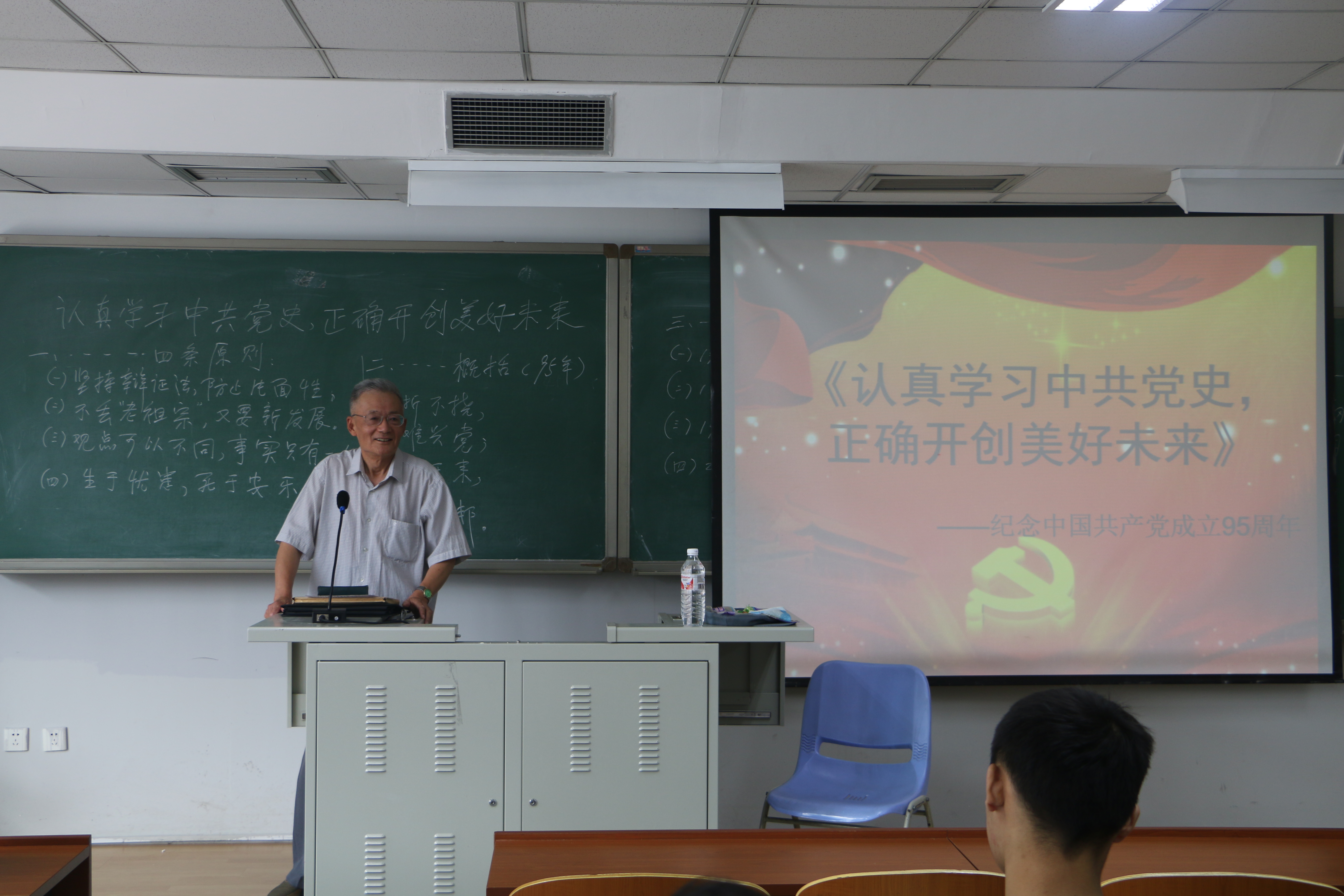 2016年6月29日上午10点,beat365vip官网登录入口党总支书记张君特邀中共中央党校原机关党委副书记、中国延安精神研究会理事薛鑫良先生为2015级入党积极分子、年级干部开展教育讲座。本次活动由2015级团分总支部承办,旨在建党九十五周年之际,使入党积极分子、年级干部能深入学习中共党史,正确开创美好未来。