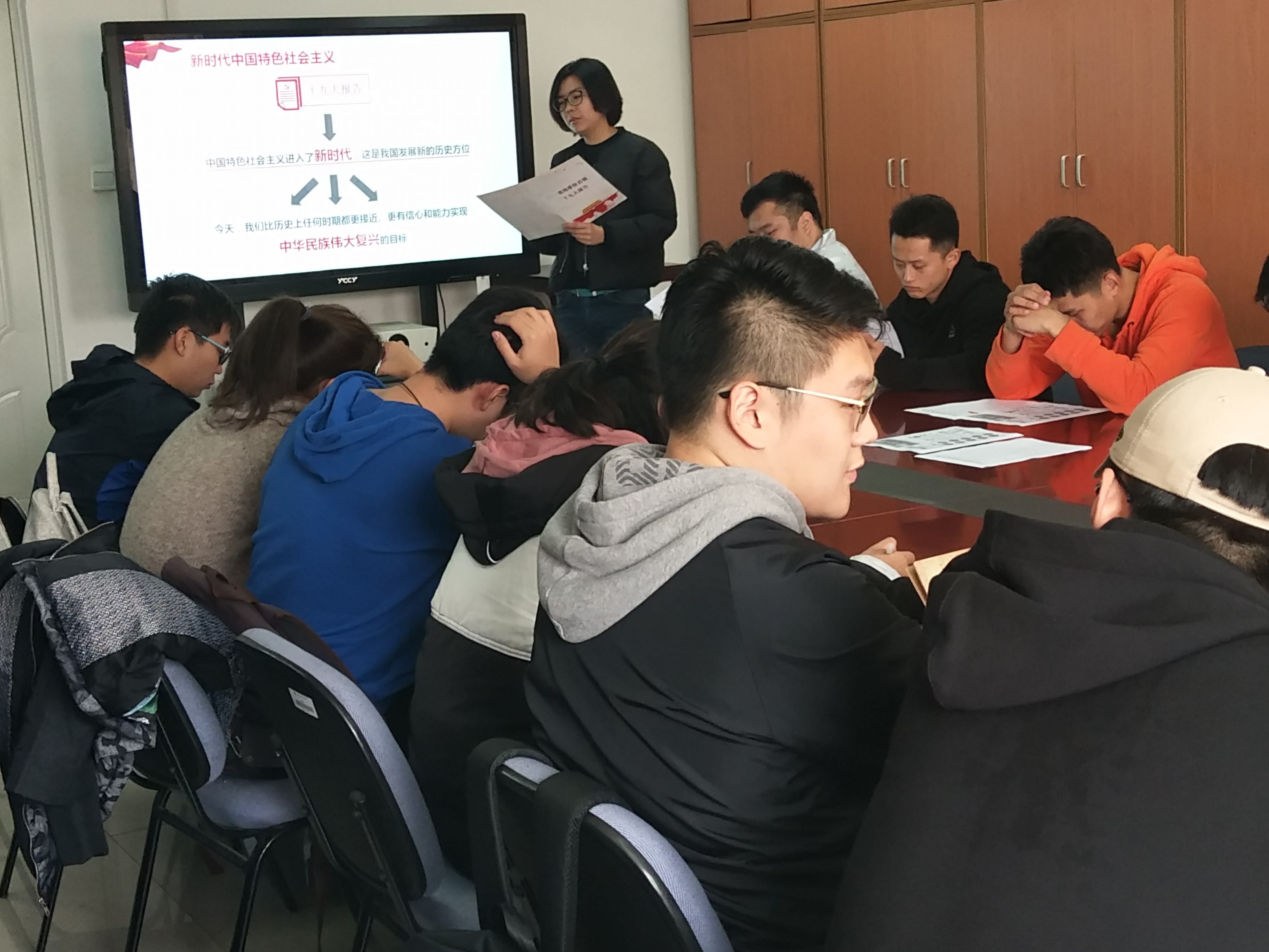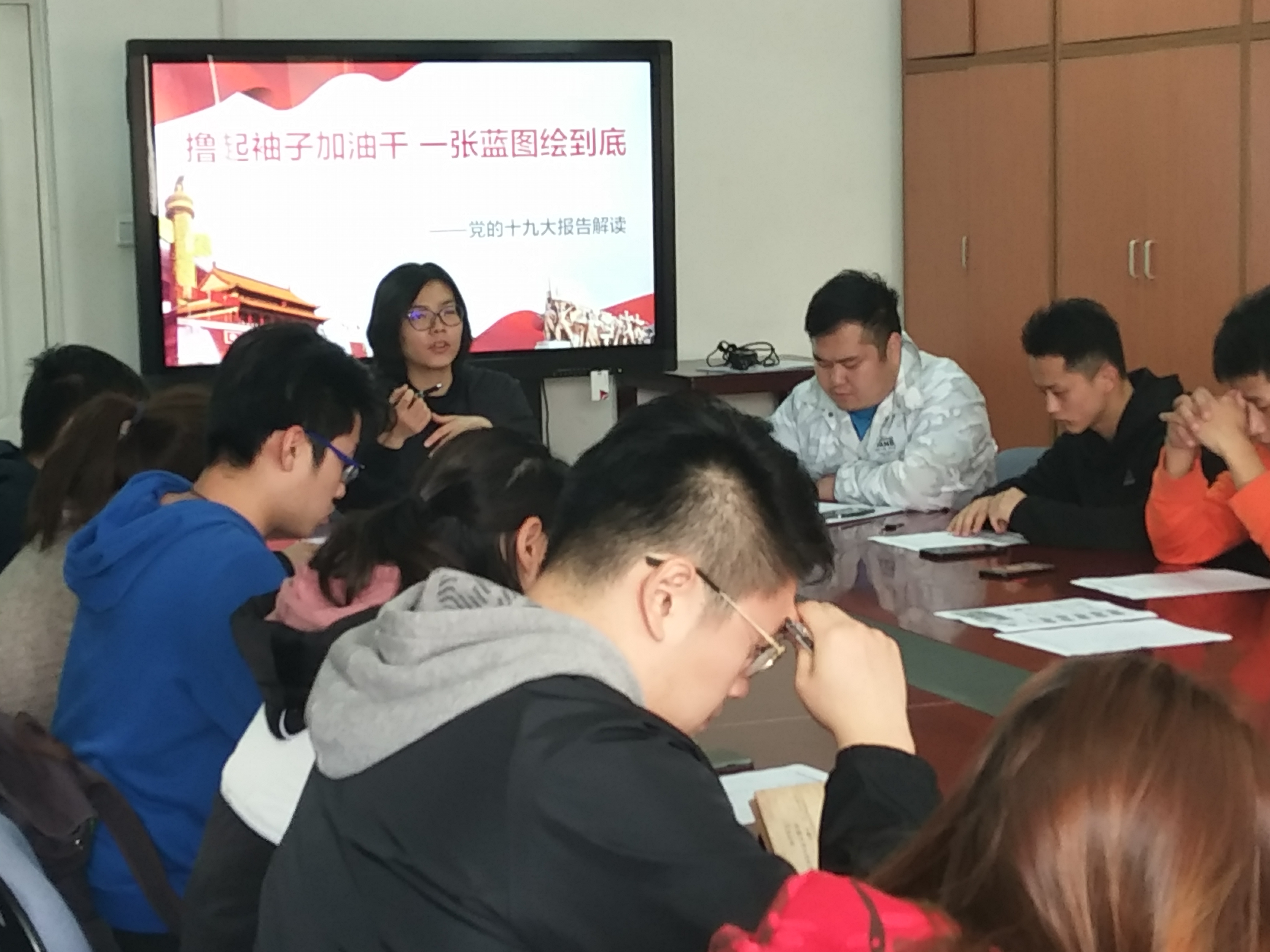 2017年11月9日中午12点,beat365vip官网登录入口团总支书记周凌瑞于教研楼210会议室带领全体学生会干部,开展十九大精神学习。