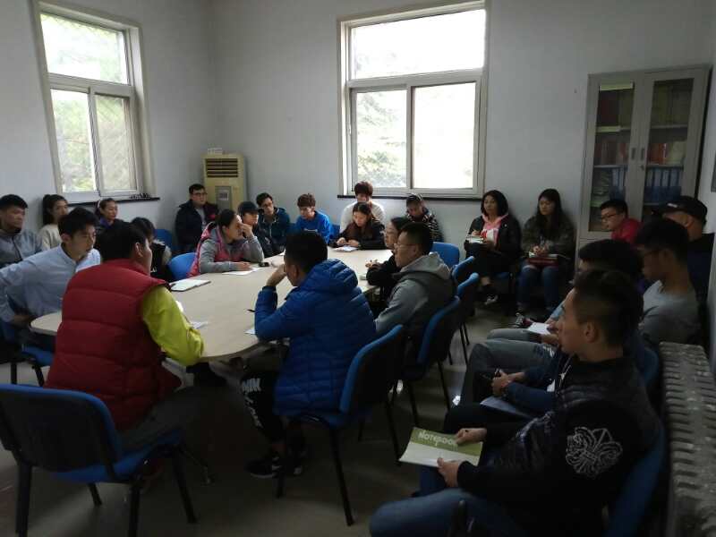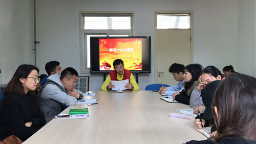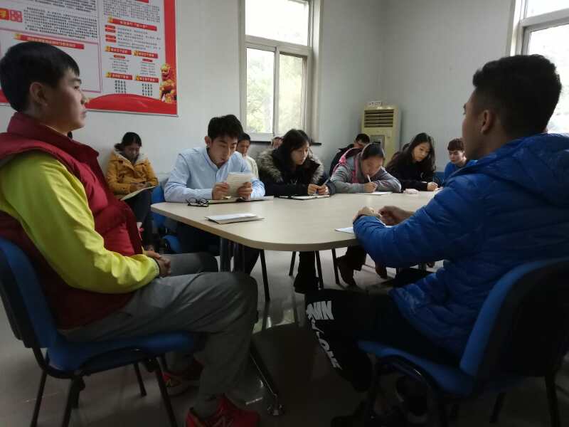 2017年11月8日13:00,beat365vip官网登录入口2016级党支部组织入党积极分子和优秀团员于田径馆会议室学习“十九大报告“专题会,会议由张怀川老师主持。