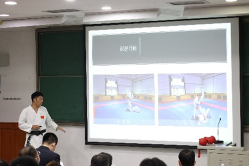 伴随着掌声,激动人心的颁奖时刻开始了。最终,通过现场评委们的打分,孙友斌老师、张剑波老师荣获本次教师基本功大赛术科“一等奖”;李健老师荣获学科“一等奖”;郭露露、王亚莹、王适娴老师荣获“二等奖”;张昊、郭南老师荣获“三等奖”,其中,孙友斌老师凭借着规范而又细致的教案荣获了本次比赛的“最佳教案奖”;张剑波老师凭借着对空手道实用而又帅气的展示一举夺下本次比赛的“最佳演示奖”。