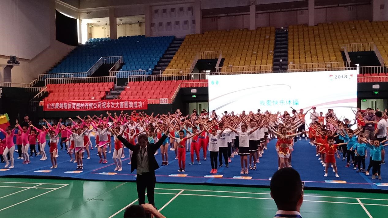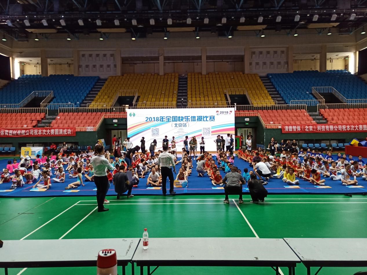 2018年5月19日,2018年全国快乐体操比赛(北京站)和2018年北京市中小学生阳光体育系列活动大众健美操比赛两场比赛同时在海淀体育馆拉开帷幕。