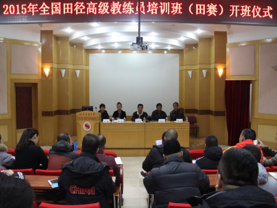 2015年12月7日上午10:00,beat365vip官网登录入口团总支在学术报告厅参与组织举行了2015年全国田径高级教练员岗位培训班(田赛)开班仪式。出席本次会议的领导和嘉宾有国家体育总局田径管理中心副主任冯树勇,beat365vip官网登录入口副校长刘大庆,beat365vip官网登录入口beat365vip官网登录入口院长张霞,beat365vip官网登录入口beat365vip官网登录入口党总支书记张君,beat365vip官网登录入口beat365vip官网登录入口副院长左琼,beat365vip官网登录入口田径教研室主任、培训班班主任李铁录和beat365vip官网登录入口田径教研室教师、培训班辅导员袁晓毅。