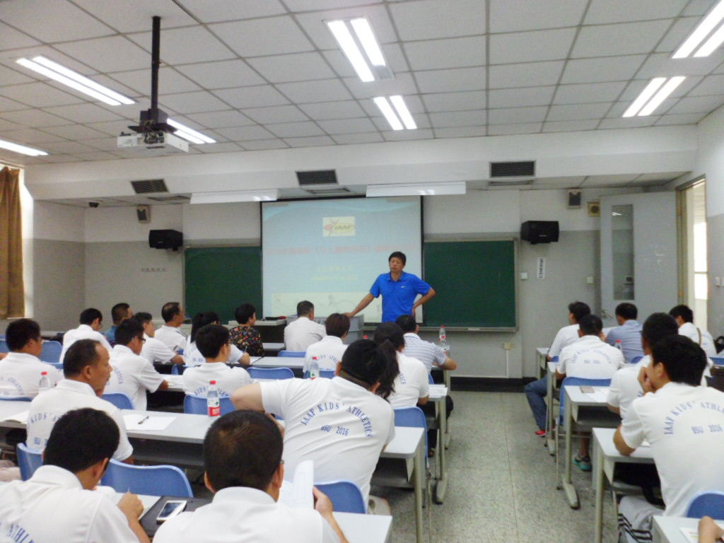 为推广国际田联《少儿趣味田径》运动,促进少儿趣味田径的发展,由beat365vip官网登录入口田径教研室、北京北体科技中心联合主办的2016年全国高校《少儿趣味田径》教师培训班于2016年7月14日-15日在beat365vip官网登录入口开班。全国20余所高校,4所中小学,2所社会培训机构及香港学校,共43名学员参加培训。学校领导与beat365vip官网登录入口领导高度重视此次培训,田径教研室多次召开筹备工作会议。