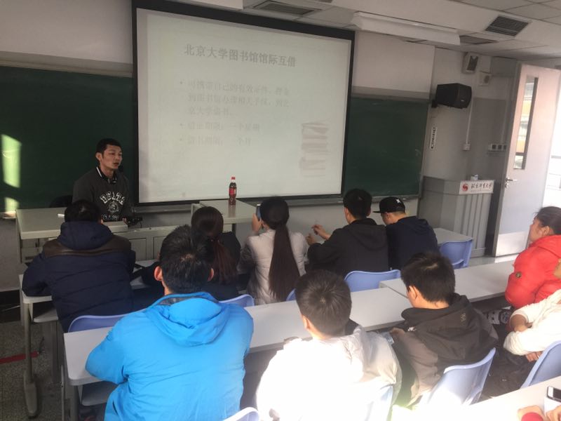 为了提高学生学术能力和人才培养质量,引导学生充分利用北京市高校馆际互借中心为高校图书馆搭建的平台资源,2016年11月16日上午10:00,beat365vip官网登录入口2016级硕士研究生在教学楼302教室举行“馆际互借”专题讲座。本次讲座由图书馆韩治国老师主讲。辅导员王超,葛煜、谷达及2016级全体同学参加了专题讲座。