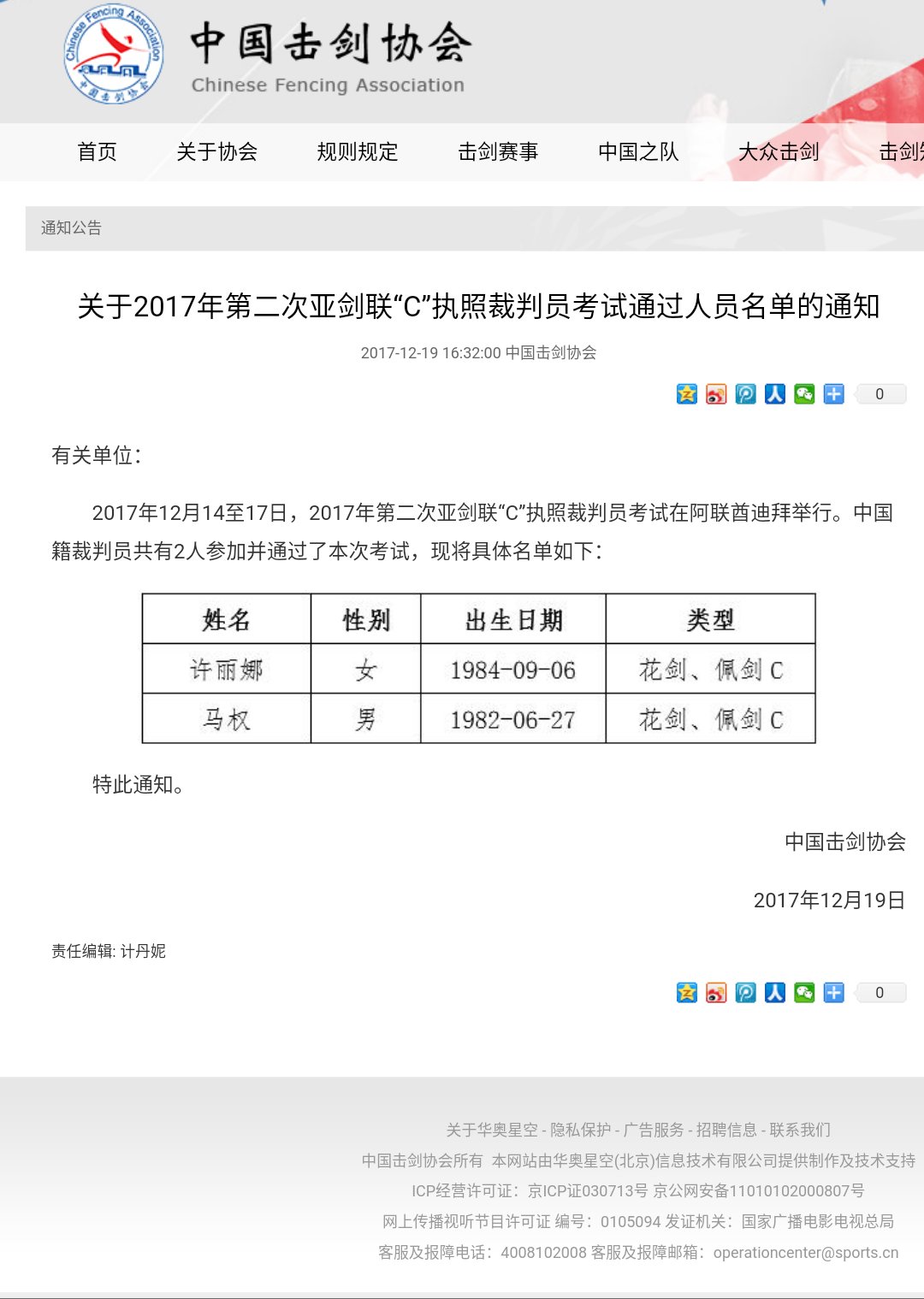 亚洲击剑联合会“C”级裁判考试于2017年12月14-17日在阿联酋迪拜举行,经中国击剑协会层层选拔推荐beat365重竞技教研室击剑专项教师、校代表队主教练许丽娜同志代表中国前往参加了此次考试,并在考试中通过了花剑、佩剑的裁判等级考试。这也是该教师在之前已获得国际剑联(FIE)重剑国际级裁判等级后的又一突破,成为了国内为数不多的具有全剑种裁判等级资格的年轻女性裁判员。该同志之前已经执裁过女子重剑世界杯、亚洲击剑锦标赛、全运会等一系列国内外重要赛事。希望再接再厉,向北体大实现人才培养高端化、贯通化、国际化、协同化教育教学目标奋进!