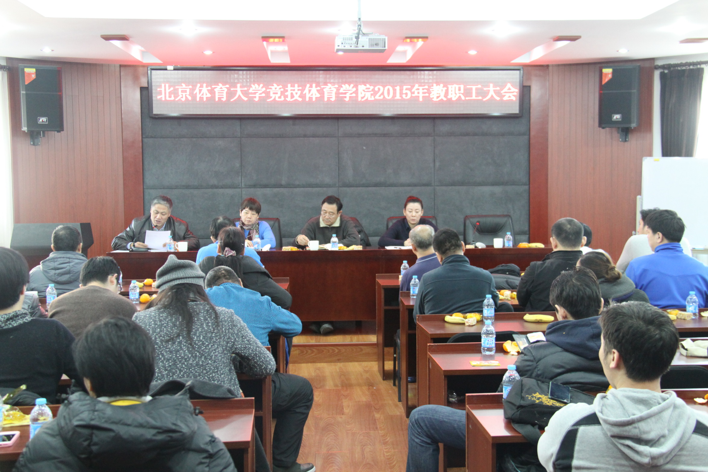 beat365vip官网登录入口教职工大会于2015年12月30日上午召开。校工会宋殿兴副主席、王磊老师、beat365vip官网登录入口全体教职工参加会议。会议由张君书记主持。