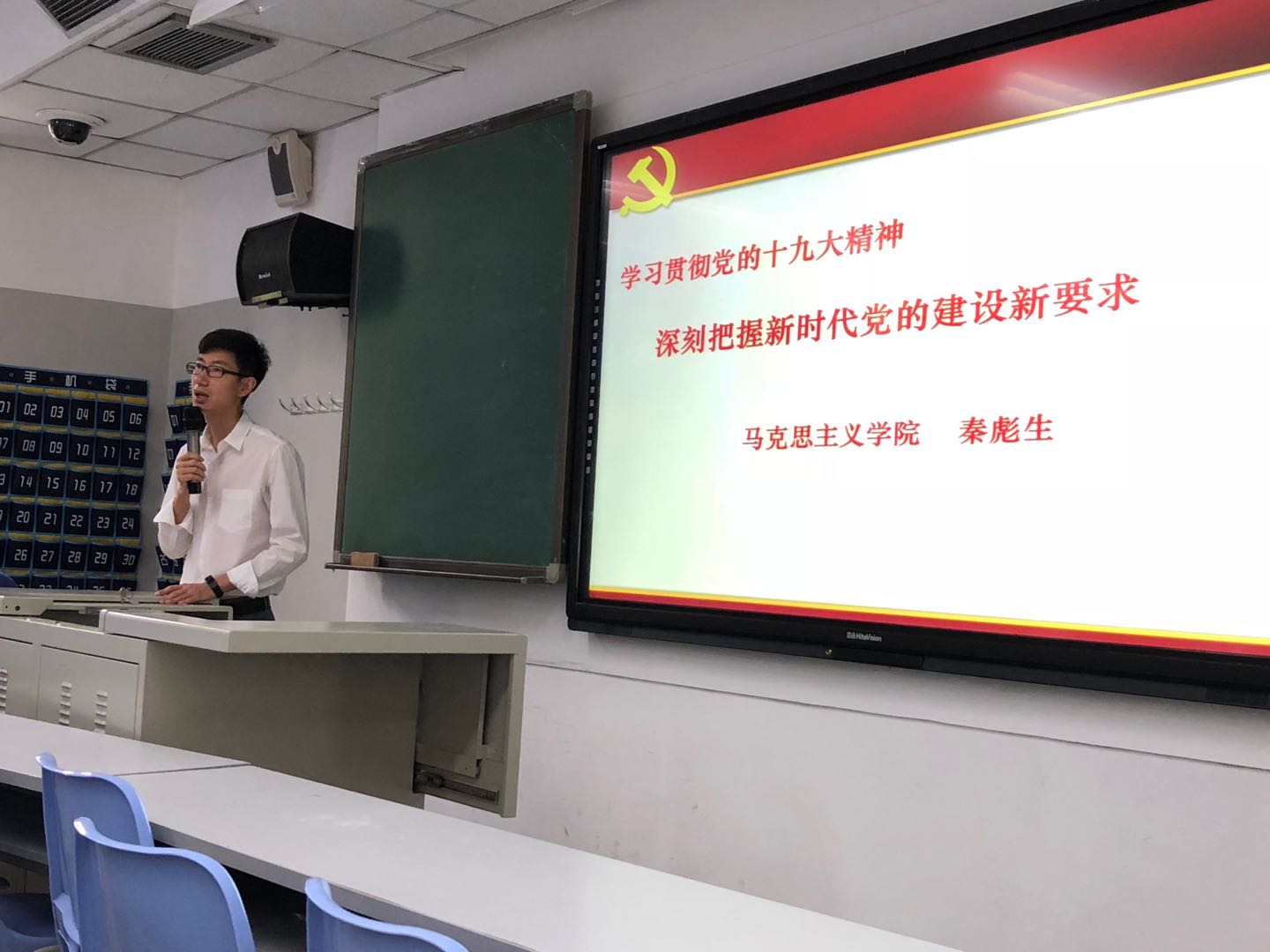 近日,beat365vip官网登录入口党总支组织开展了党支部委员第五次专题培训,由马克思主义学院副教授秦彪生老师做了题为“学习党的十九大精神,深刻把握新时代党的建设新要求”的专题讲座。beat365vip官网登录入口党总支部书记尚迎秋、全体师生党支部书记及支部委员参加了学习。