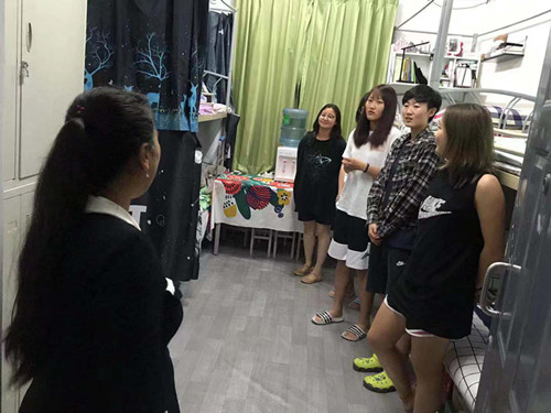 本次检查针对宿舍的卫生以及安全情况进行细致的检查,宿舍卫生的总体情况良好,有条不紊,大部分宿舍地面干净整洁,被子叠放整齐,无乱摆放的情况,得到了校领导的肯定。但同时也在检查中发现问题的存在,对于在走廊晾晒衣服的问题进行了批评指正。苍海院长也对同学们提出了意见和期望,希望同学们能保持宿舍的卫生整洁,在假期也要遵守纪律,更好的迎接国庆节的到来,也希望国庆节的回家的同学注意交通安全,同时也给同学们送上了国庆假期的祝福。