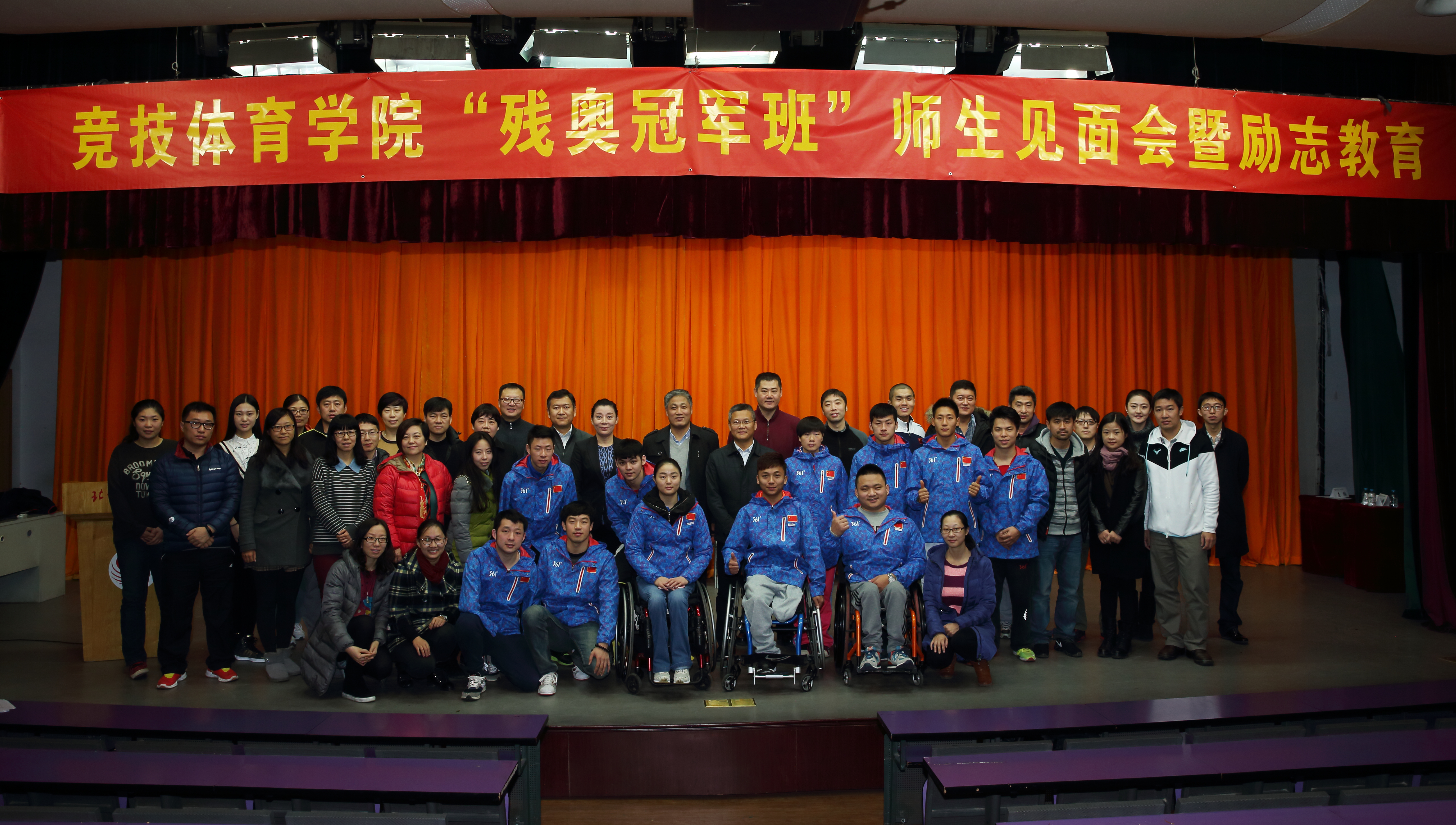 2015年11月18日,beat365vip官网登录入口beat365vip官网登录入口迎来了2015级残奥冠军班的12名新同学。学校及学院领导高度重视此次活动,全院师生为这些乐观向上、自强不息的冠军们举办了隆重的师生见面会。