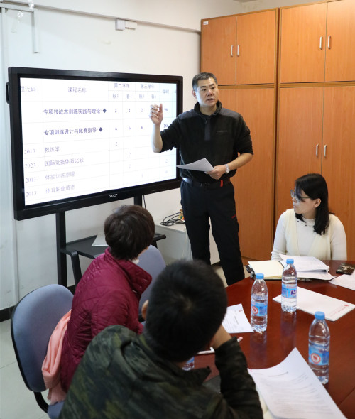 教务处张文毅老师对会上反映的问题和建议进行了梳理,并提出首先要明确从2018级开始,运动训练专业学生整体结构发生了改变,学校根据这个情况对运动训练专业2018培养方案进行了定位上的改变。为了更好地服务于竞技体育后备人才培养,突出运动员、教练员、裁判员“三员”培养工作。只有理念上转变,才能更好地开展大纲撰写工作。针对问题比较集中的教练员方向课程,张文毅老师也提出了针对性意见。