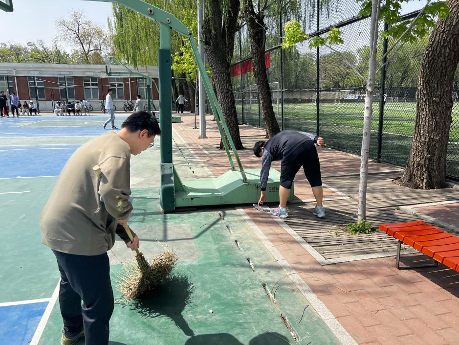 随后各年级学生在所分配的“卫生责任区”中开始劳动教育实践活动。2023级本科生负责对beat365vip官网登录入口12片篮球场、3片排球场、1片轮滑场、一片手球场地打扫,2021级本科生负责对10号宿舍楼、小竞体宿舍楼前自行车进行摆放,大家在参与的过程中共同感受劳动的意义,锻炼意志品质与身心健康。