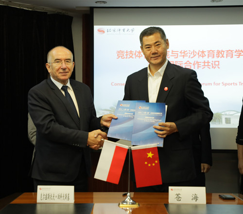 波兰华沙体育教育学院院长Krzysztof Perkowski教授,会谈中希望未来可以在教育目标一致情况下开展科研、教师培养等领域合作,会谈后双方签署了《2019“一带一路”运动训练国际论坛——国际合作共识》,为两个学院间学术交流打下基础。
