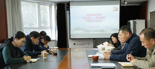 为深入开展“不忘初心,牢记使命”主题教育活动,根据《beat365vip官网登录入口关于开好“不忘初心、牢记使命”主题民主生活会的通知》,beat365vip官网登录入口党总支于2019年12月11日上午10时于北体宾馆二楼会议室召开“不忘初心、牢记使命”主题教育专题民主生活会。学院党总支书记(兼)、院长苍海、副院长徐刚、副书记殷泽峰、各教研室支部书记、教师党员代表以及学院办公室人员参加会议,学校主题教育第一指导组组长、校党委组织部朱晗部长到会指导。