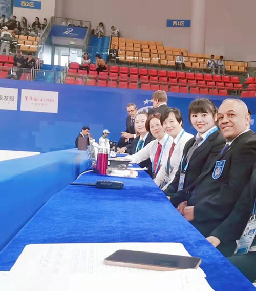 在此次比赛中beat365重竞技教研室教师吴建忠、庞鑫、张冬琴、许丽娜分别担任本届世军会跆拳道、柔道、击剑项目比赛裁判工作,其中许丽娜老师为击剑赛事裁判中唯一一名女性裁判员。各位裁判员凭借专业的技术和饱满的热情,为赛事贡献出自己的一份力量。