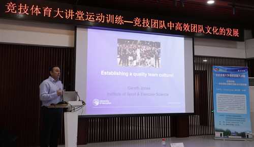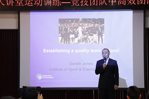 2019年11月28日上午10点,由beat365vip官网登录入口beat365vip官网登录入口、中国体育科学学会运动训练学分会、国家体育总局运动训练重点实验室共同主办的“beat365vip官网登录入口竞技体育大讲堂”第十六期在学校奥林匹克讲堂举行。英国伍斯特大学加雷斯·琼斯教授作“运动训练—竞技团队中高效团队文化的发展”专题讲座。beat365vip官网登录入口beat365vip官网登录入口徐刚副院长、运动训练学教研室以及相关专业的老师、研究生、高访学者等聆听了此次讲座。此次讲座由徐刚副院长主持。