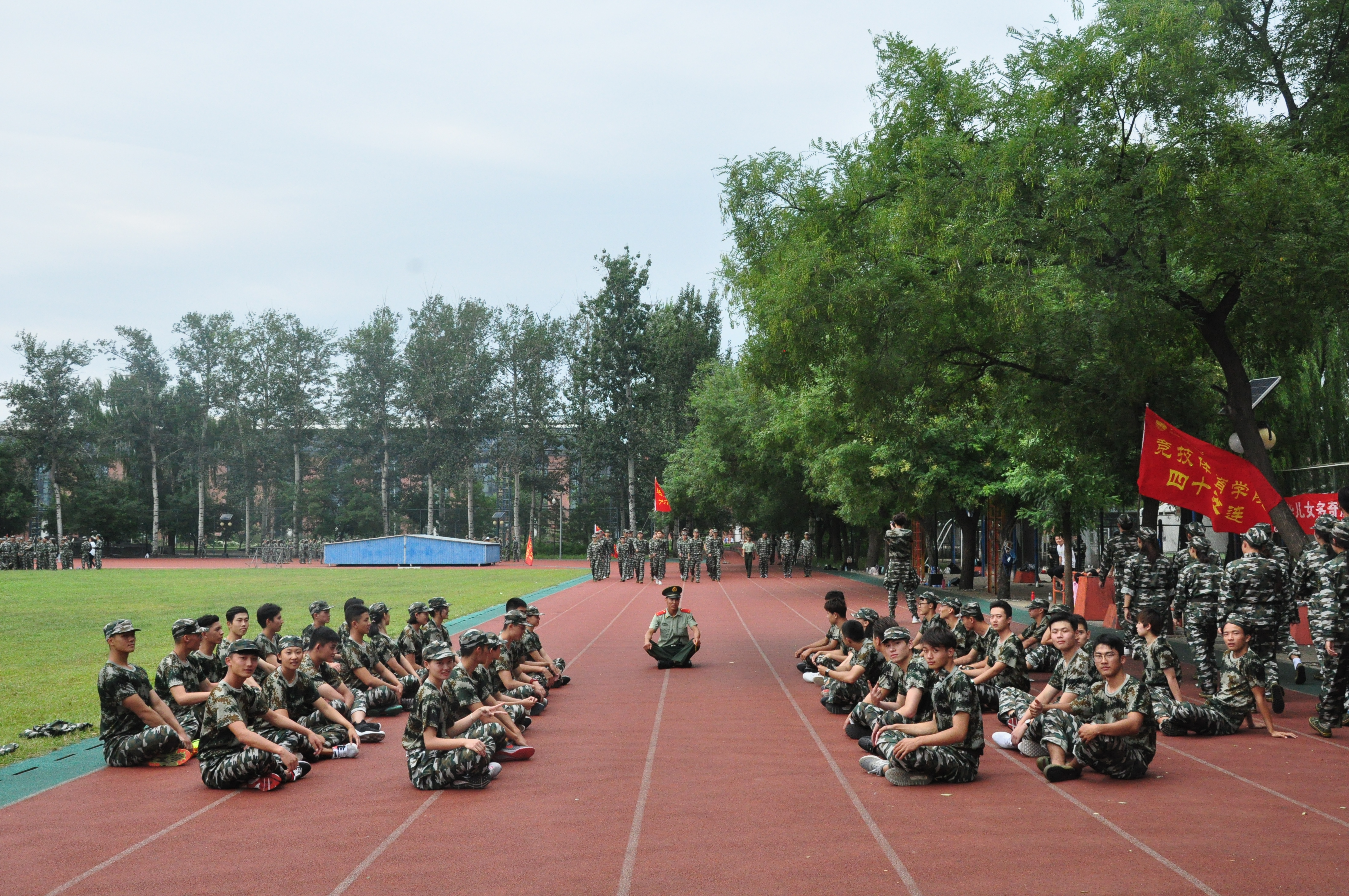今天上午在各连队完成了日常训练后,教官们组织各连队进行互相交流学习。在交流学习中促进了各连队之间的友谊,激发了同学之间共同进步的热情。下午2:30,各连组织开展了正步走学习。正步走最考验的是同学之间的配合,只要一位同学稍有疏忽就会造成整个连队行走的失误。只见同学们齐心协力,把注意力百分百投入训练,十次、几十次的重复训练。在同学们的不断努力下,一支支队伍整齐划一的走在阳光下。