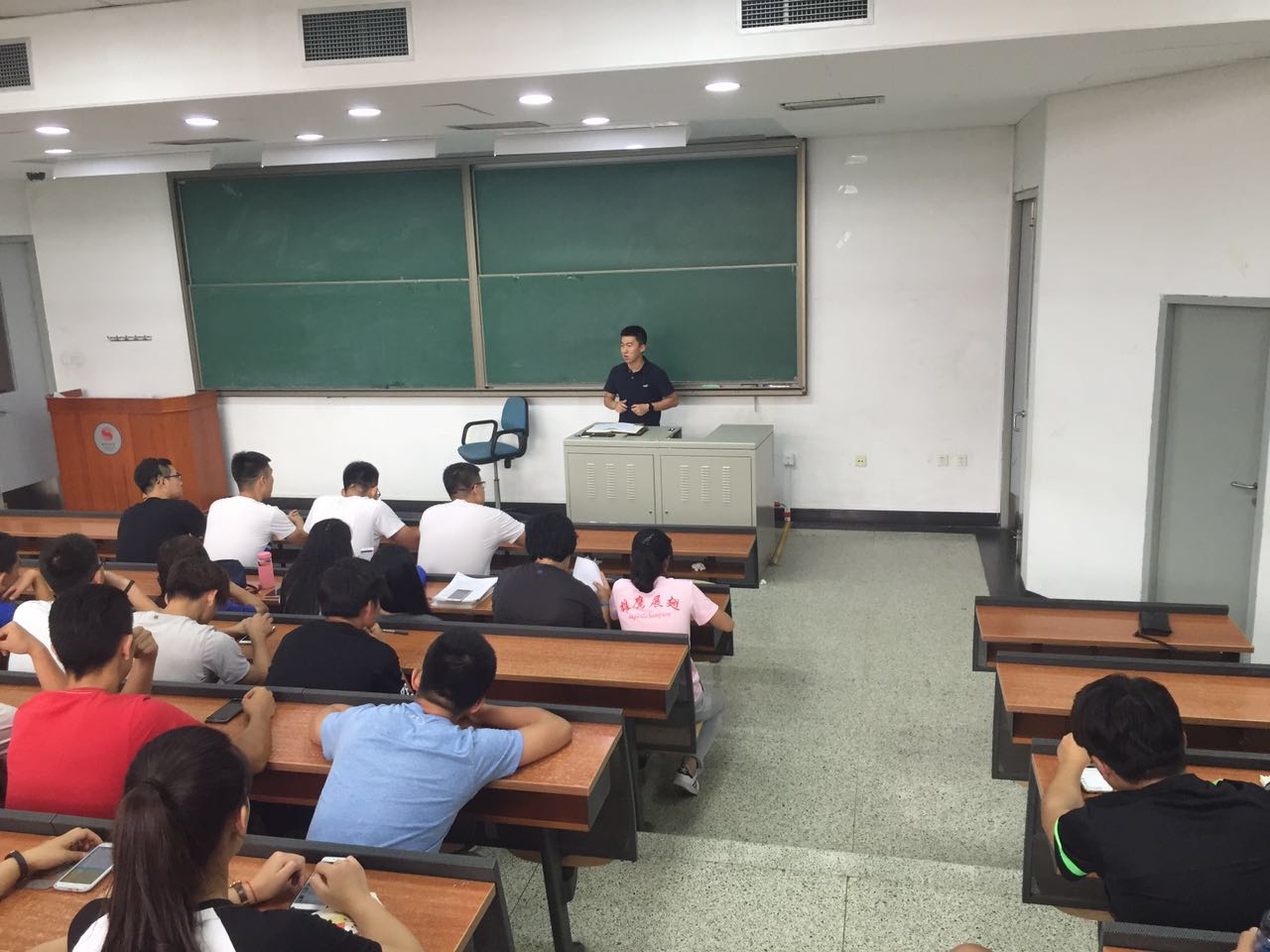 会议伊始,王业乔老师向大家简单的介绍了beat365vip官网登录入口2016年暑期社会实践的基本情况。全院共将派出66名学生,先后前往山东、山西、河北、内蒙古、江西开展暑期社会实践活动,为期两个月,主要以全民健身及青少年足球为开展方向。随后,王老师以自身本硕期间的社会实践活动为事例,为大家讲述社会实践期间需要注意的基本事项和活动如何开展的更加有意义,同时也再三明确提出安全是一切活动开展的前提。会议最后,王老师解答了关于所有学生提出的问题和疑惑。