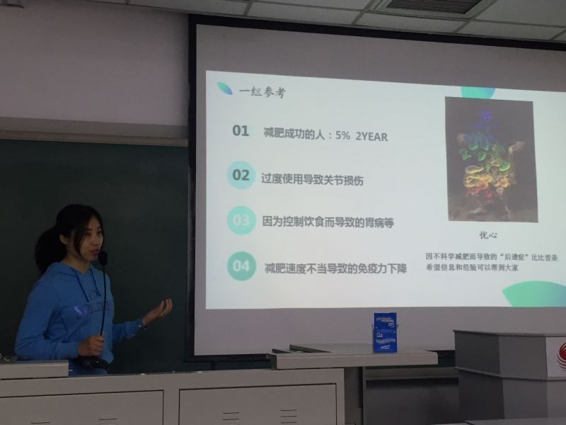 本次讲座对健康的身材的评价指标进行了分析讲解,并通过各种身材图片提高同学们分辨健康身材的眼力。在讲座中对减脂和增肌能否同时进行、饮食的要求和禁忌以及锻炼的方法等多种减肥中遇到的问题进行了讲解和讨论!同学们积极响应,踊跃提出问题并讨论!