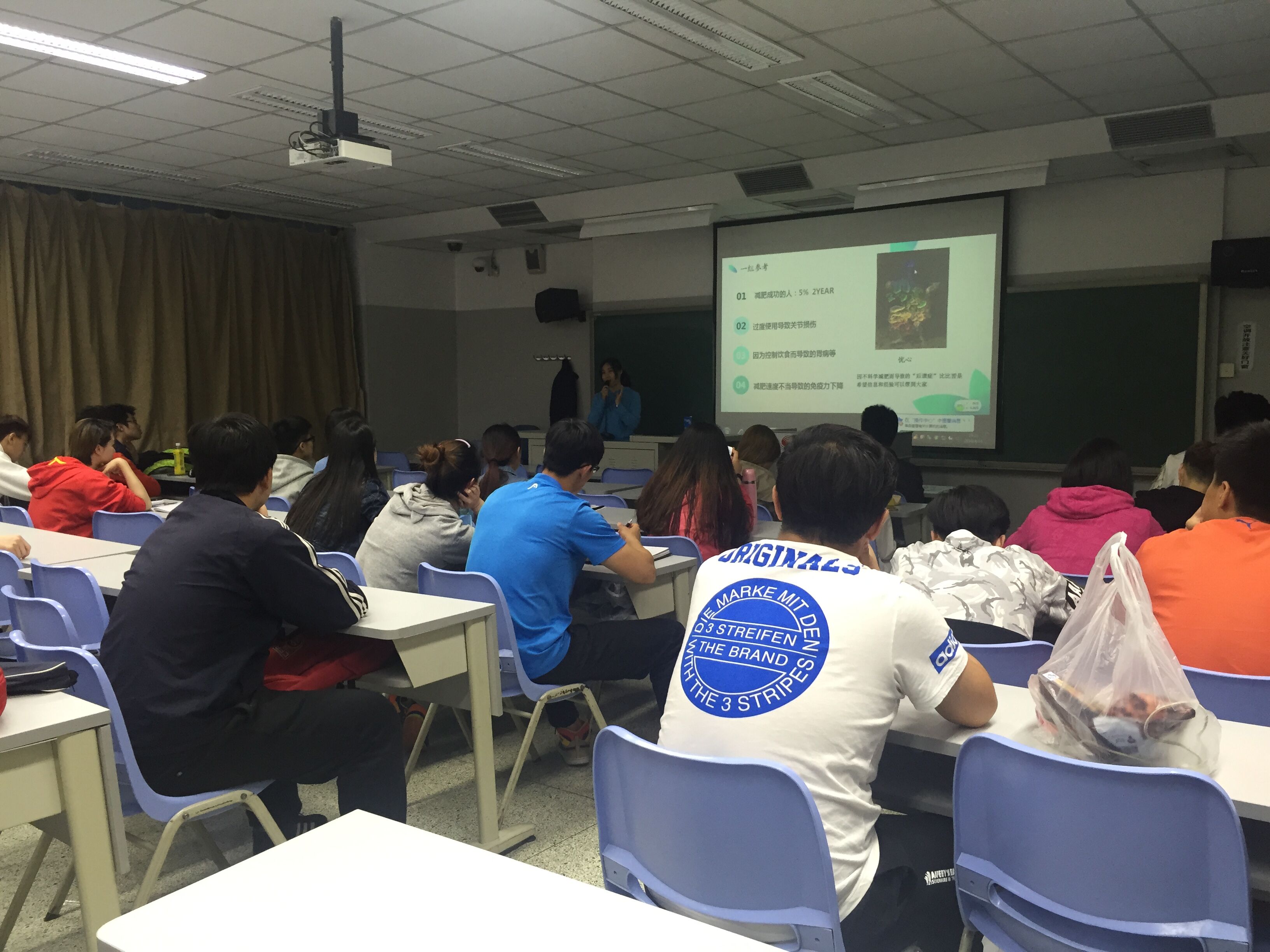 2016年4月14日晚七点,beat365vip官网登录入口团总支学生会在教学楼503教室开展了“健康生活,美丽人生”系列讲座。讲座的主要内容围绕着科学塑身减肥展开,主讲人是具有丰富社会健身指导经验,去年考入我校继续深造学习的王文静,她曾是多家500强企业的健身顾问,具有多方专业认证资格,私教课时费达到千元以上。