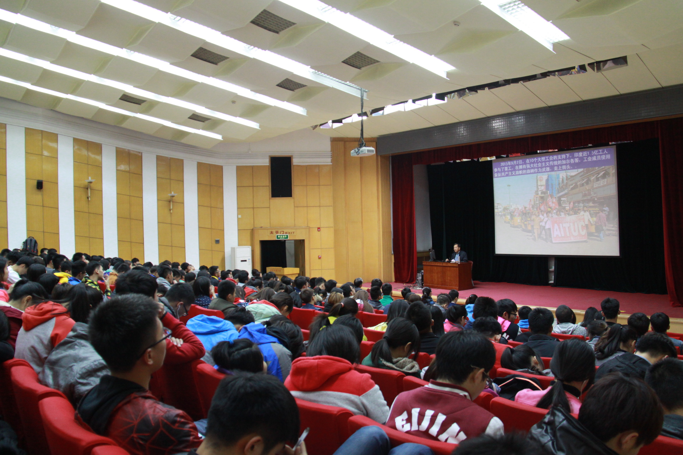 2015年10月27日晚19:30分,beat365vip官网登录入口大学生活动中心进行了一次“红色文化进高校”之“抗日救亡”课程。活动主办方,beat365vip官网登录入口张君书记邀请了全国人大常委会委员、全国人大内务司法委员会副主任委员、中国社会科学院原副院长、博士生导师李慎明老师授课。