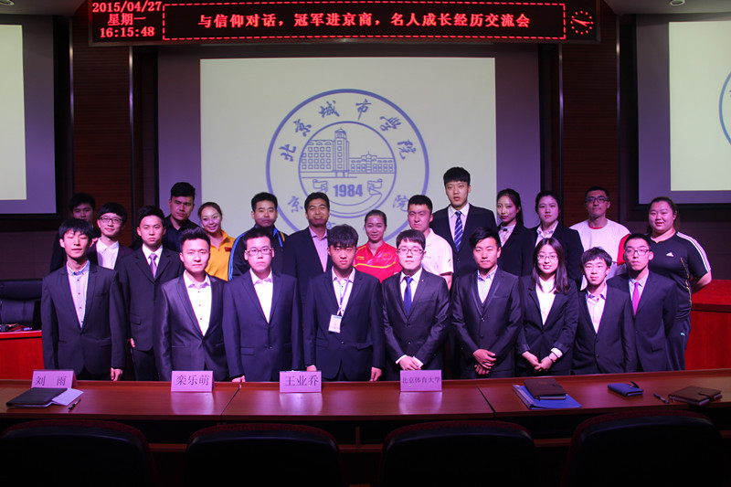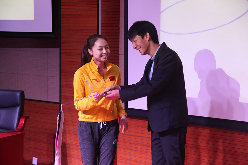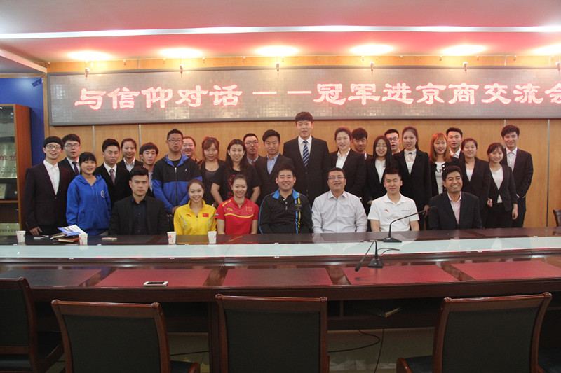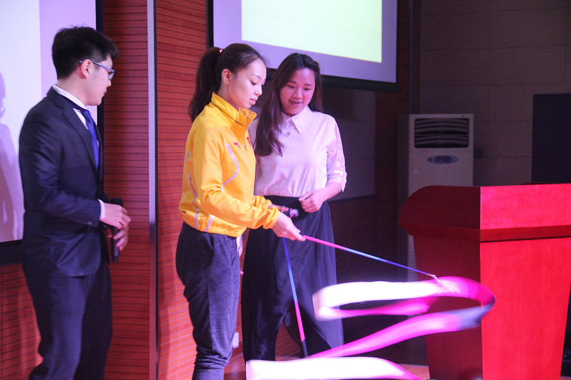 本次交流活动共分为两部分。第一部分是参加由京商学院组织的“与信仰对话,冠军进京商,名人成长经历交流会”活动,由世界艺术体操冠军侯亚男与奥运会体操冠军杨伊琳以“我的运动人生”为主题为京商学院学生做出演讲,以自身经历向到场师生展示体育人努力、拼搏的精神,激励在场同学为梦想而努力。活动现场,两位冠军还与在场观众亲密互动,现场教授艺术体操体育用具的使用方法。杨伊琳同学在演讲完毕后,回答京商学院同学们提出的问题,并为其答疑解惑。第二部分为学生会交流会。会上,学院团总支学生会、联合会学生干部与栾老师、王老师将自身活动经验一一与京商学院的学生会干部们分享,双方共同探讨关于活动举办、人员分配等问题。