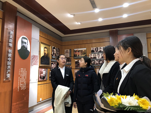 最后,beat365vip官网登录入口2017级本科党支部成员来到李大钊同志雕像前深深缅怀先烈伟大的情怀、不朽的牺牲。进献花束后,由支部书记高静怡老师作为领誓人,在党旗下重温入党誓词。