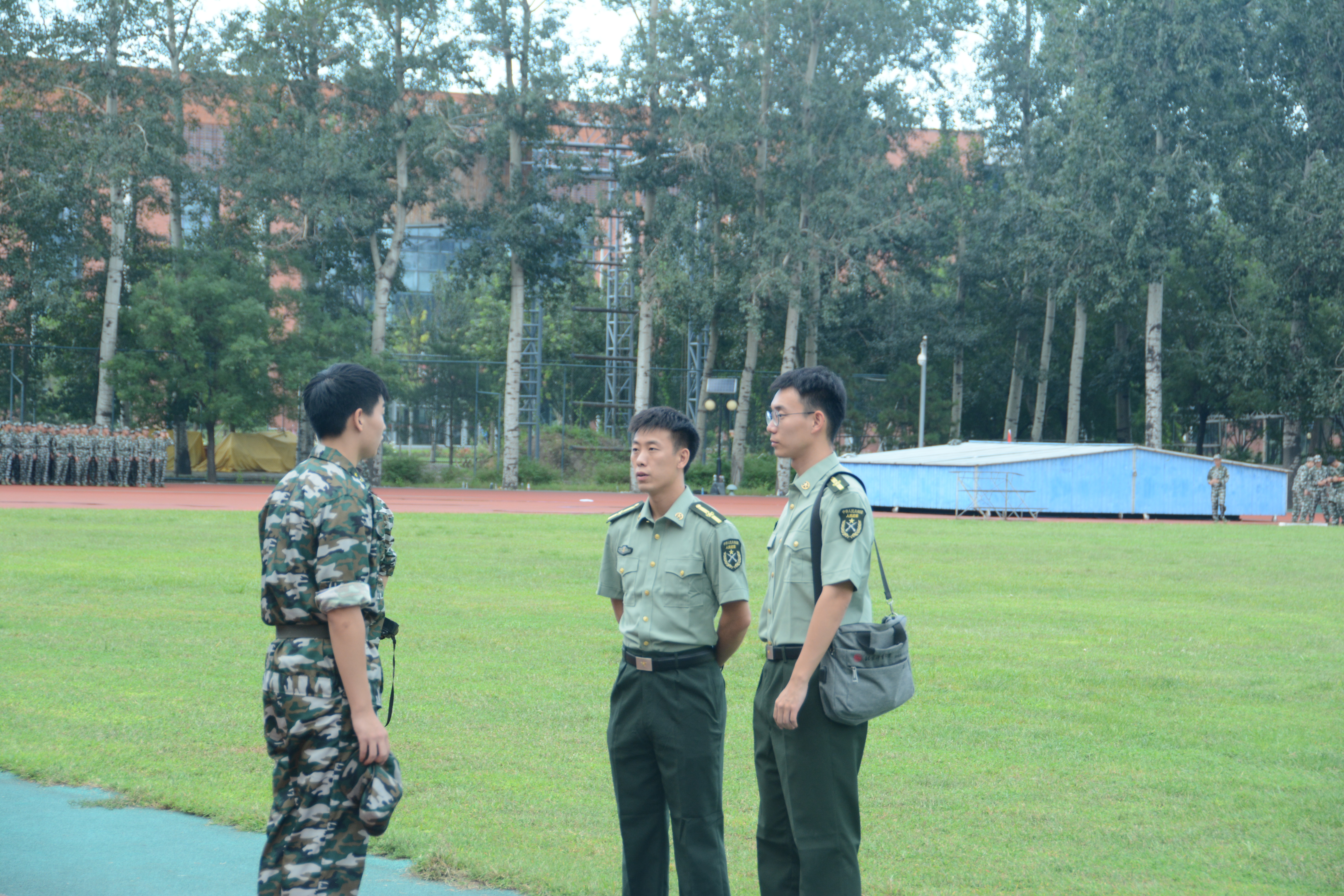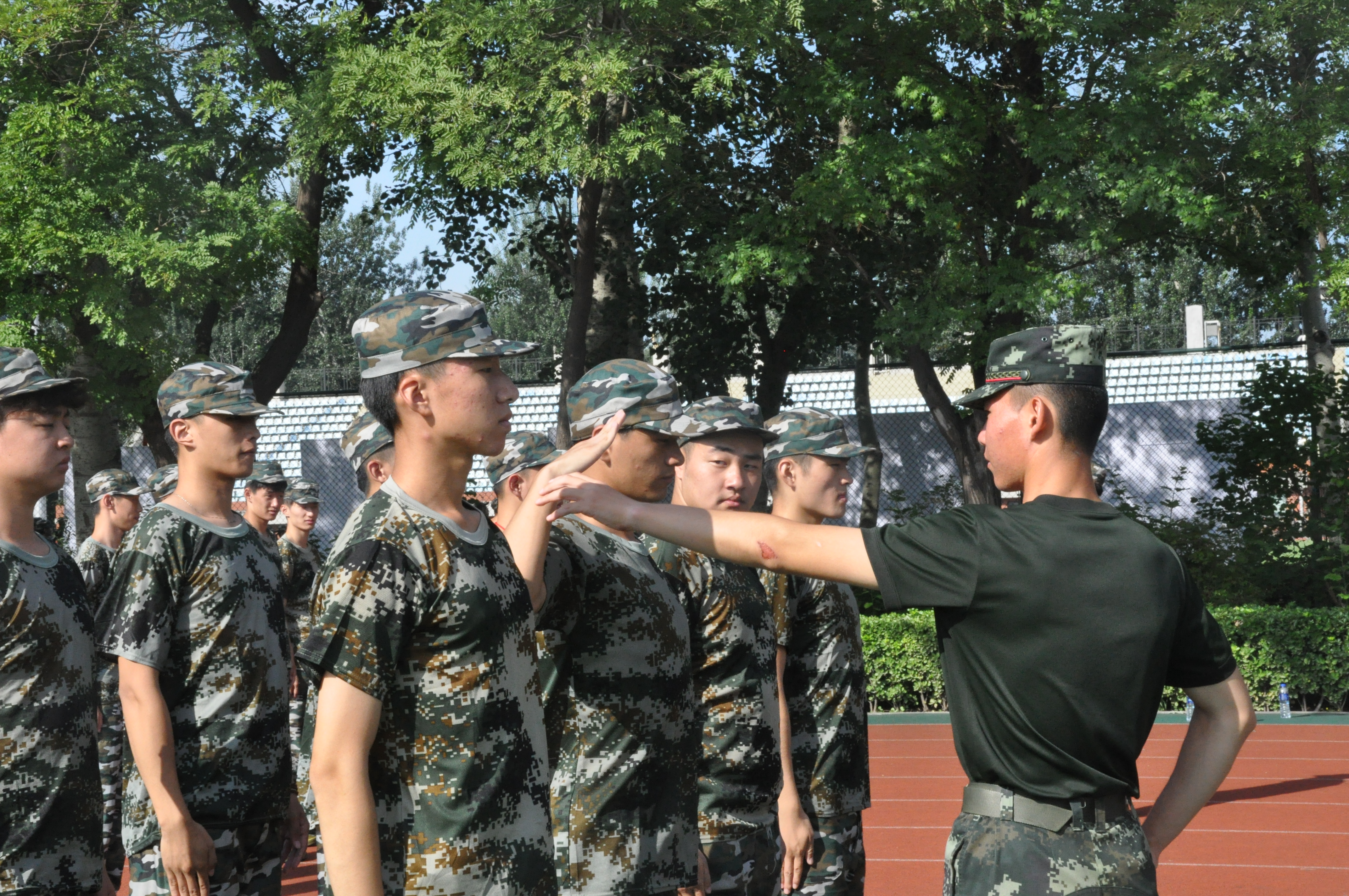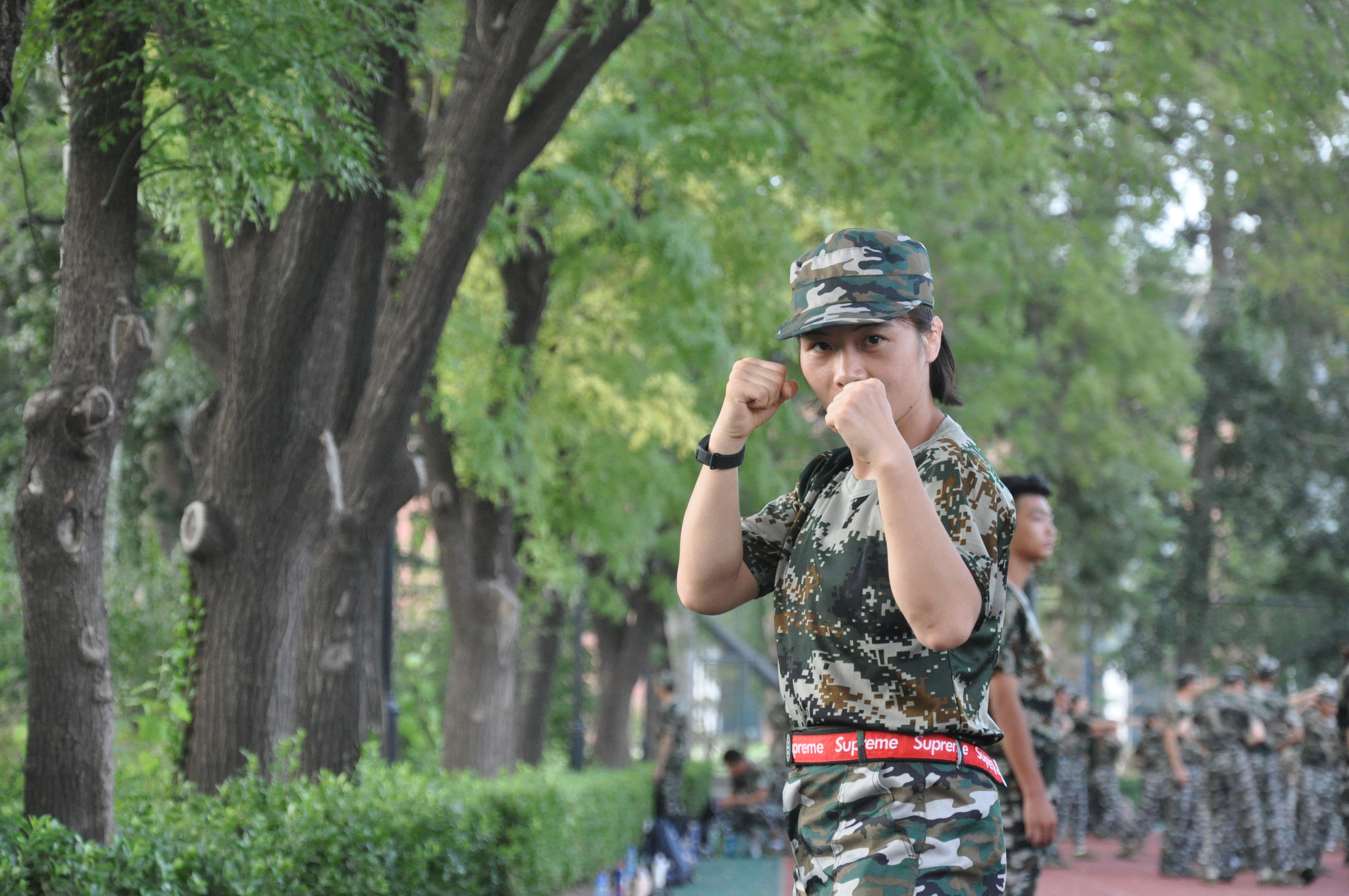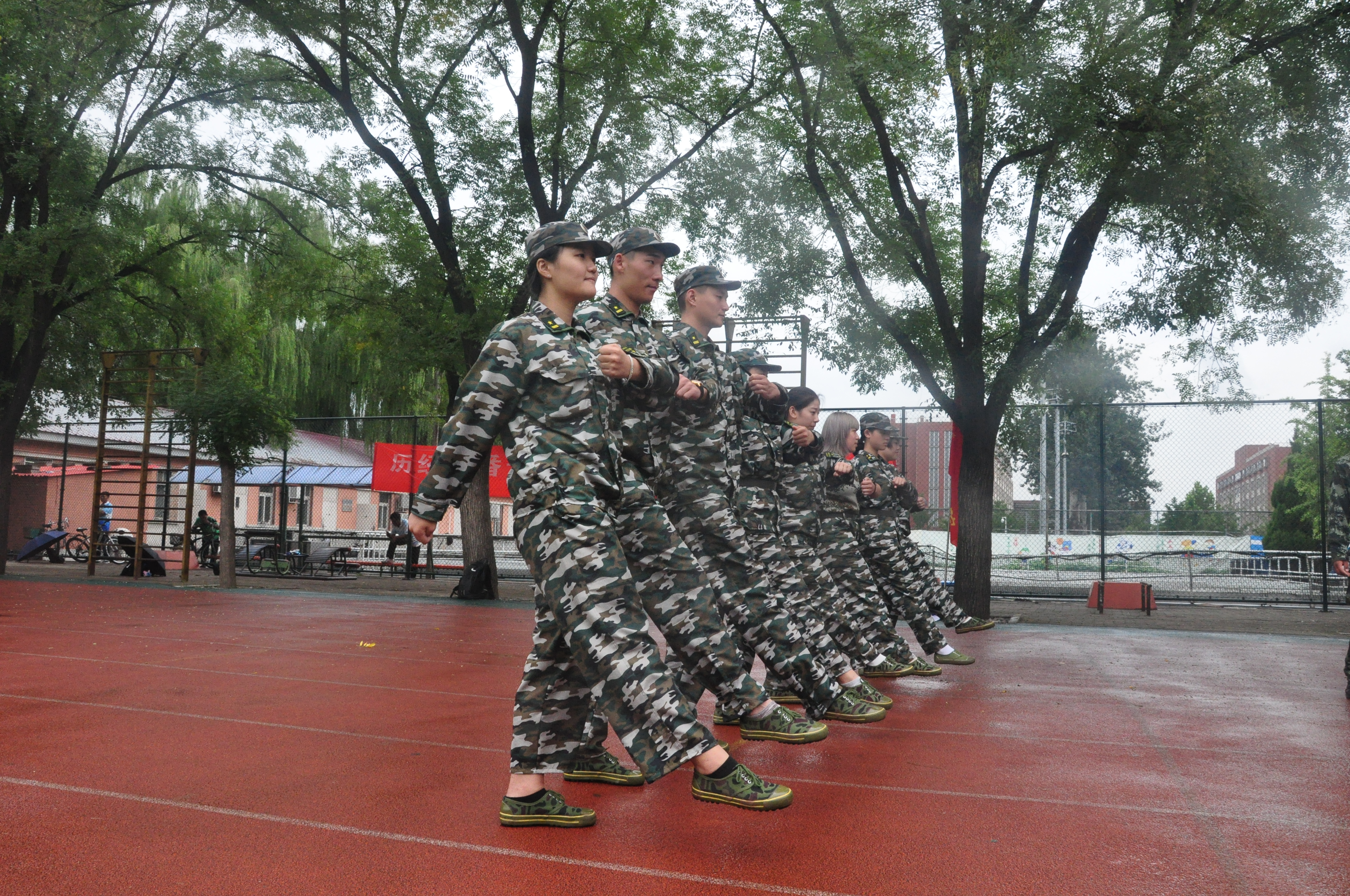 今天对擒敌拳进行了学习和练习,让我们对待军训更加严肃与专致。这六天有很多难忘的回忆,像电影一样,一帧一帧的历历在目细雨中,我们军姿站的笔直,纹丝不动;骄阳下,我们齐步走的步伐整齐,动作一致;歌唱比赛上,我们歌声响亮;教官对我们的要求小到立正时手指并拢这样的每一个细节,大到整体行进时队列的整齐,步伐。每次的列队表演,连队里的每一个人都会像上战场一样为彼此加油打气,鼓励对方。