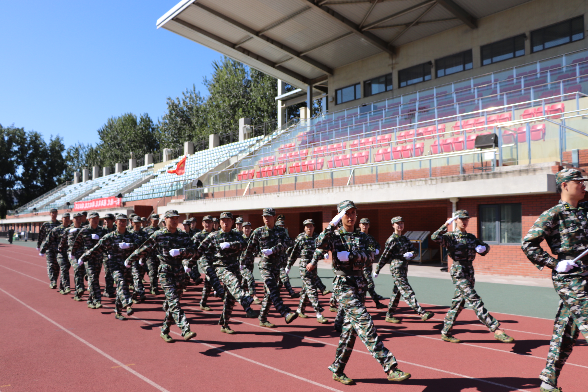 时光荏苒如流水。十多天的训练,我们的军训渐渐走向尾声。带着激情澎湃的心情,迎来清晨的第一束阳光以及军训总结表彰大会的彩排,每个方队都是斗气十足,气宇轩昂。 洪亮的军歌萦绕在耳旁,铿锵有力的步伐,以步伐代替歌舞,踏的是青春的热血与激情。当升旗仪式开始,震撼心灵的歌声深深的触动心弦。这一刻都是我们内心最自豪最光荣的荣耀。用口号代言青春的面貌。那是威震四方的号角。它昭示的是我们十余日以来不畏艰苦磨砺出的钢铁般的意志。烈日高阳,莘莘学子依然带着激情与热血徜徉在青春的长河中。我们展示的是百折不挠。在这美好而多变得九月。我们共同收获成长,收获不一样的战友情。我们心中都带着对教官的不舍与坚定的信念。我想,我们把对教官的不舍化为动力,努力踢好每一步。在学习上更要努力拼搏。鹰击长空,鱼翔浅底,渐渐统一的步伐,日益嘹亮的口号。我们怀揣同一个梦,为明天的精彩而时刻准备。在这短暂而又难忘的军营时光,心灵受到了洗礼,身体得以加强,是我们铭记一生,影响我们一生的美好时光。