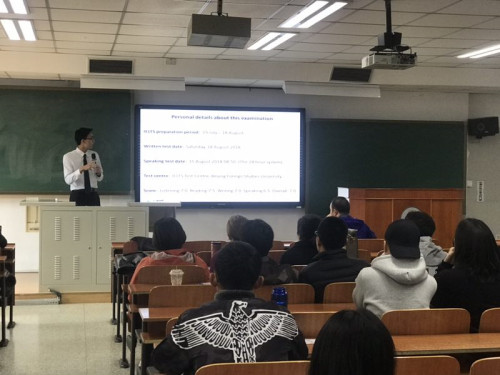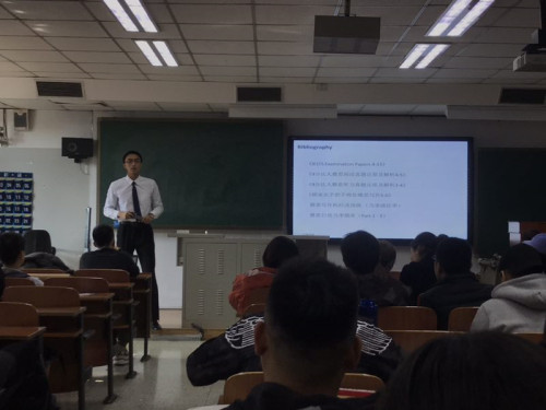 何鸿建同学从今年5月份开始着手准备雅思考试,8月份取得了7分的好成绩。此次分享会,何鸿建同学从自身角度出发,结合自身经验,分别从听力、阅读、口语以及写作方面介绍雅思学习中应准备的方面。同时,他也向同学们推荐了多本书籍以及软件来提高雅思的成绩。并将他自己总结的雅思学习方面的关键点分享给同学们。准备雅思考试是一个需要积累的过程,何鸿建同学让我们看到了不懈的努力和坚持。也正是他这份努力和坚持,让他在考试中取得了理想的成绩。