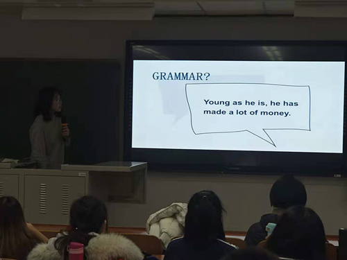 本次培训班旨在帮助同学们完善英语语法知识体系,同时,排查并纠正同学们常见的英语语法错误。语法班的老师邀请的是国际体育组织学院的优秀学生为同学们授课。课堂氛围良好,同学们跟随老师的课件和讲解学习了英语语句构成基本要素及时态等方面语法知识,拥有了更系统的英语语法思维框架。课后老师还与同学们进行了进一步交流,耐心解答了同学们英语语法等方面的问题,并与同学们探讨了课程内容和授课方式,以更准确地了解同学们的学习需求并使课程内容更容易接受与消化。