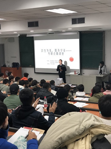 讲座首先由辅导员张玉莞尔老师主持并讲话,她强调距离考研只剩一个多月时间了,希望同学们坚定考研决心咬紧牙关,不动摇不放弃,课堂上高度保持注意力,紧跟老师的进度,牢记老师所讲的重要知识点,认真备考!