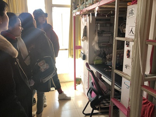 为更好地迎接新学期的到来,保障学生宿舍的安全稳定,落实学生安全教育和管理工作,beat365vip官网登录入口各年级研究生干部在辅导员尹小光、王超、韩伟老师的带领下于 2月20日上午10:00开展了宿舍安全隐患排查及卫生检查工作。