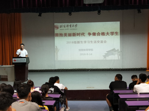 9月14日晚19:00,beat365vip官网登录入口2018级全体新生在卓越报告厅顺利举行以“拥抱美丽新时代 争做合格大学生”为主题的学习生活分享会。分享会由2018级辅导员李骁騉老师主持。