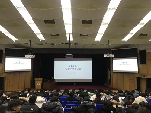 2019年2月18日中午12点,beat365vip官网登录入口2015级在师统大讲堂召开了新学期的年级大会,本次大会由beat365vip官网登录入口2015级辅导员鲁骥老师主持,2015级beat365vip官网登录入口全体学生参加了本次大会。