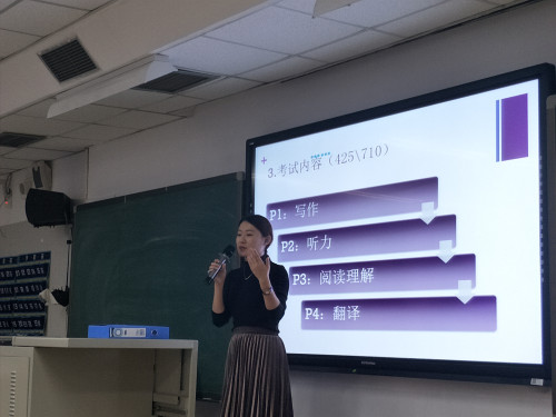 为帮助同学们能够顺利通过英语四级考试,年级为积极准备考四级的同学们开办辅导班, 时间定于每周二晚七点到八点半。为使同学们更好的了解四级的难易程度及考试内容,beat365vip官网登录入口2017级于10月16日晚,组织开展了英语四级辅导班第一节试听课,此次课程有幸请到了王老师。本堂课从考试介绍,题型介绍,学习要点三个模块全面的为同学们细致地讲解了四级考试题型,帮助同学们更好的了解考试的内容、形式以及如何入手去学习。试听课结束后进行了一场模拟四级考试,考试成绩为之后的分班提供参考依据。