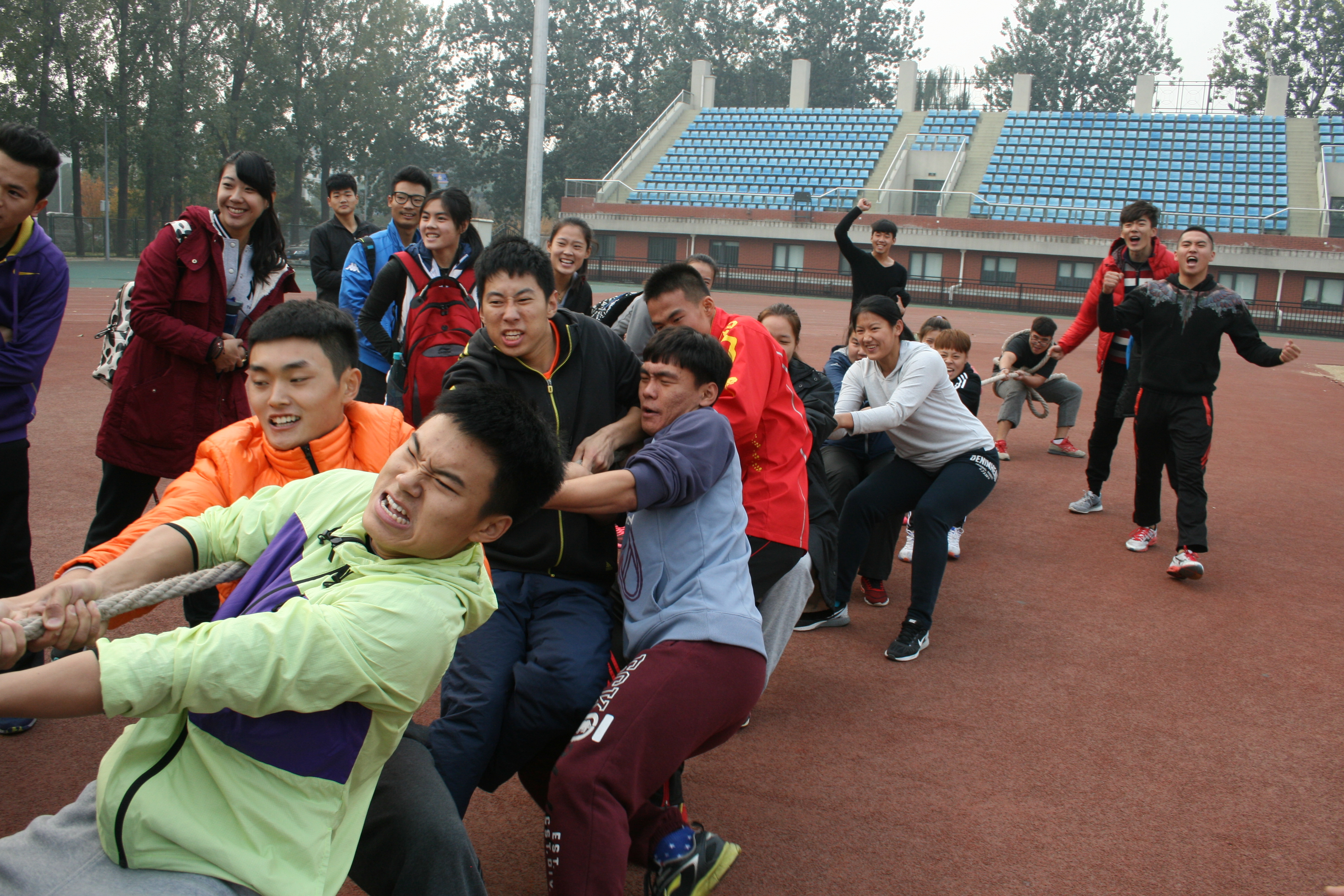 2015年11月4日,由我校beat365vip官网登录入口2015级举办的拔河比赛在英东田径场如期举行。这次拔河比赛是以增强各班级的凝聚力以及班级与班级之间的交流为宗旨,为同学的课余生活增添色彩。此次比赛,各班同学都以积极、热情的态度参与此次活动。