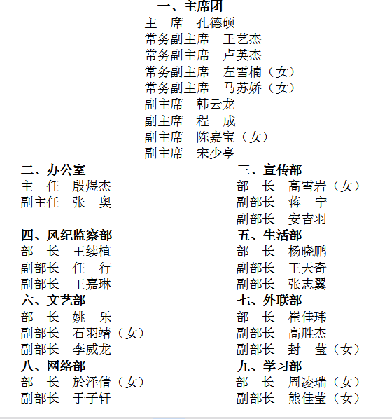 2013年学生会干部名单