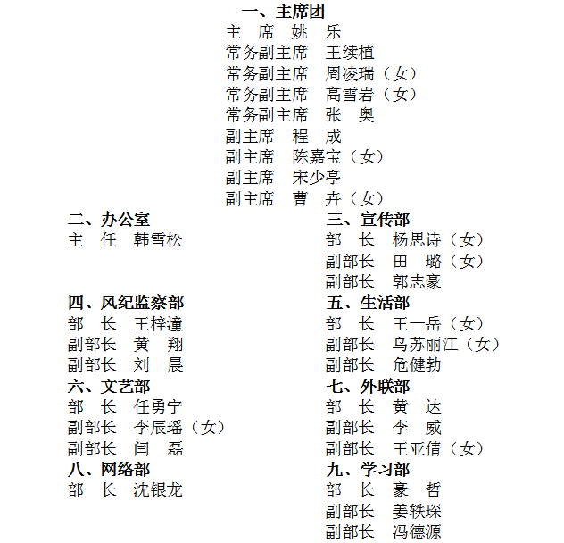 2014年学生会干部名单